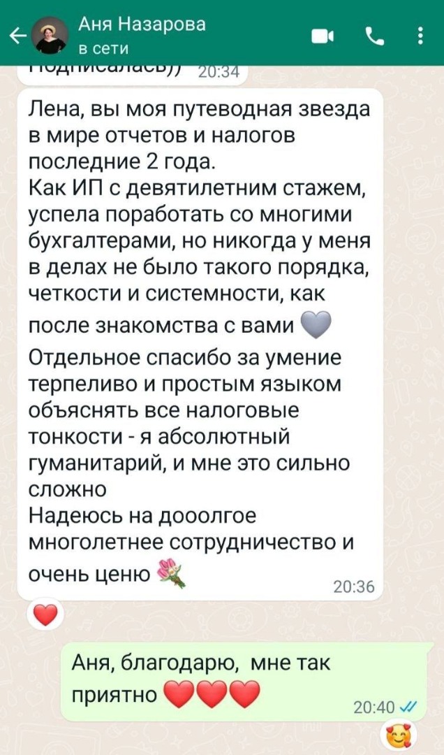 Меня зовут Елена, и я - не просто бухгалтер, я - ваш проводник в сложном, но таком важном мире финансов. Я знаю о налогах ВСЁ!